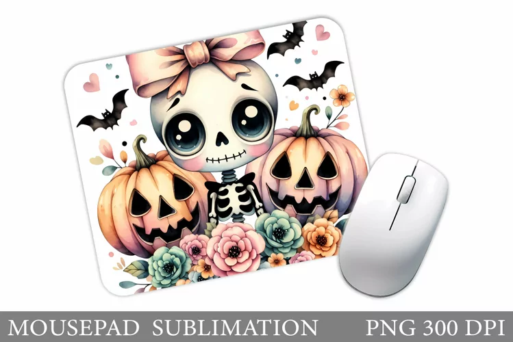 Cute Skeleton Mouse Pad. Halloween Mouse Pad Sublimation