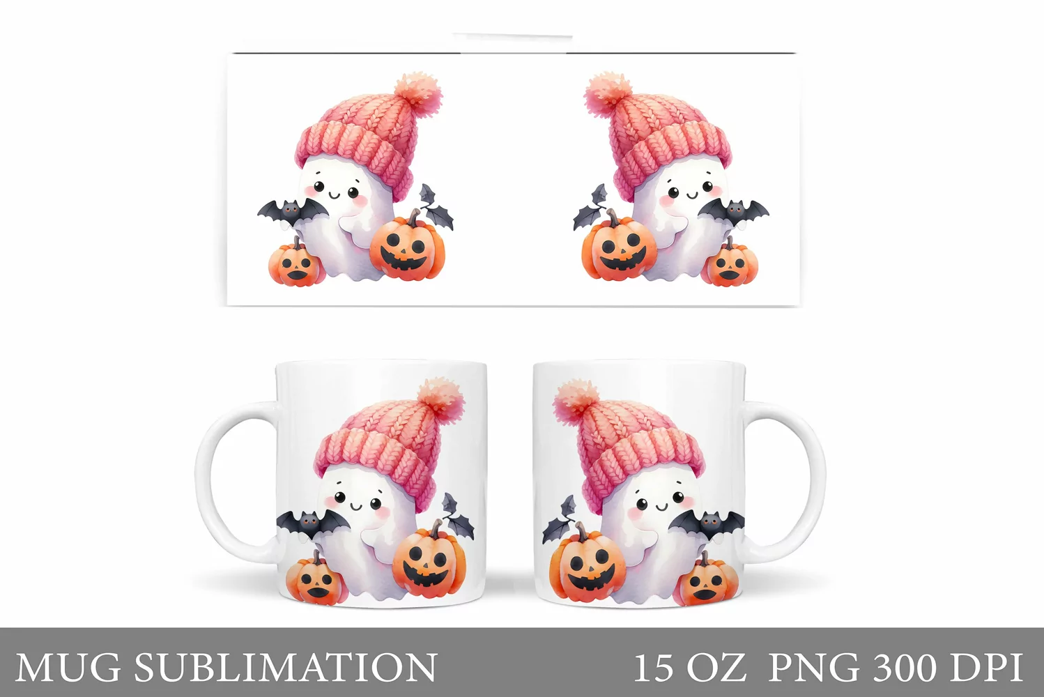 Cute Ghost Mug Design. Cute Halloween Mug Sublimation