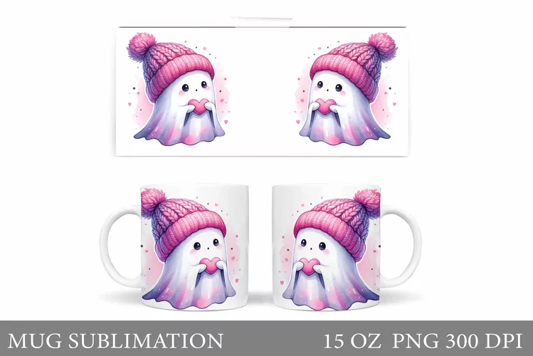 Cute Ghost Mug Design. Cute Halloween Sublimation