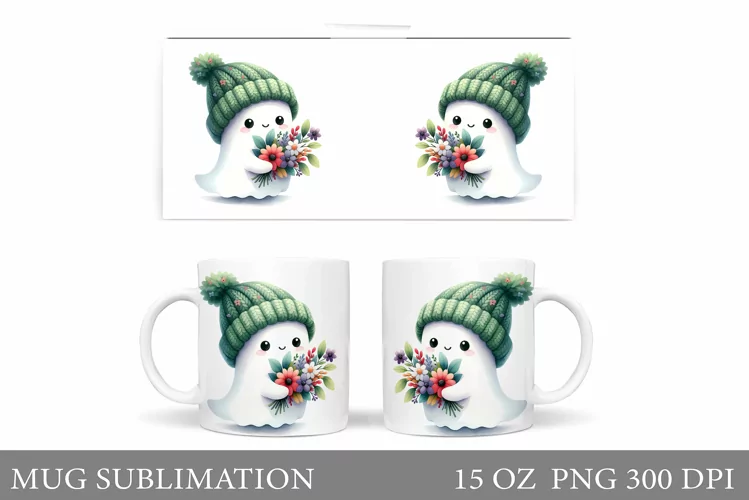 Cute Ghost Mug Design. Halloween Pumpkin Mug Sublimation