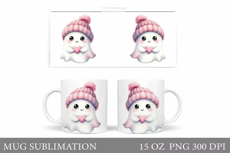 Cute Ghost Mug Design. Cute Halloween Mug Sublimation