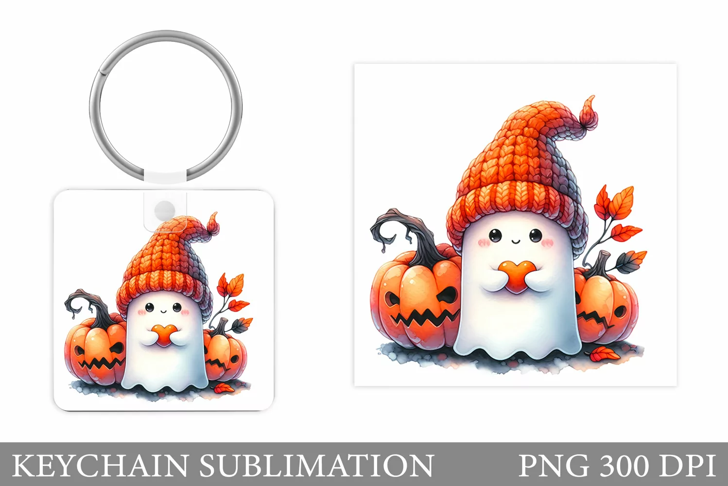 Cute Ghost Keychain Design. Cute Halloween Keychain example image 1