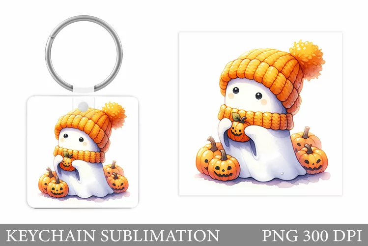 Cute Ghost Keychain Design. Cute Halloween Keychain example image 1