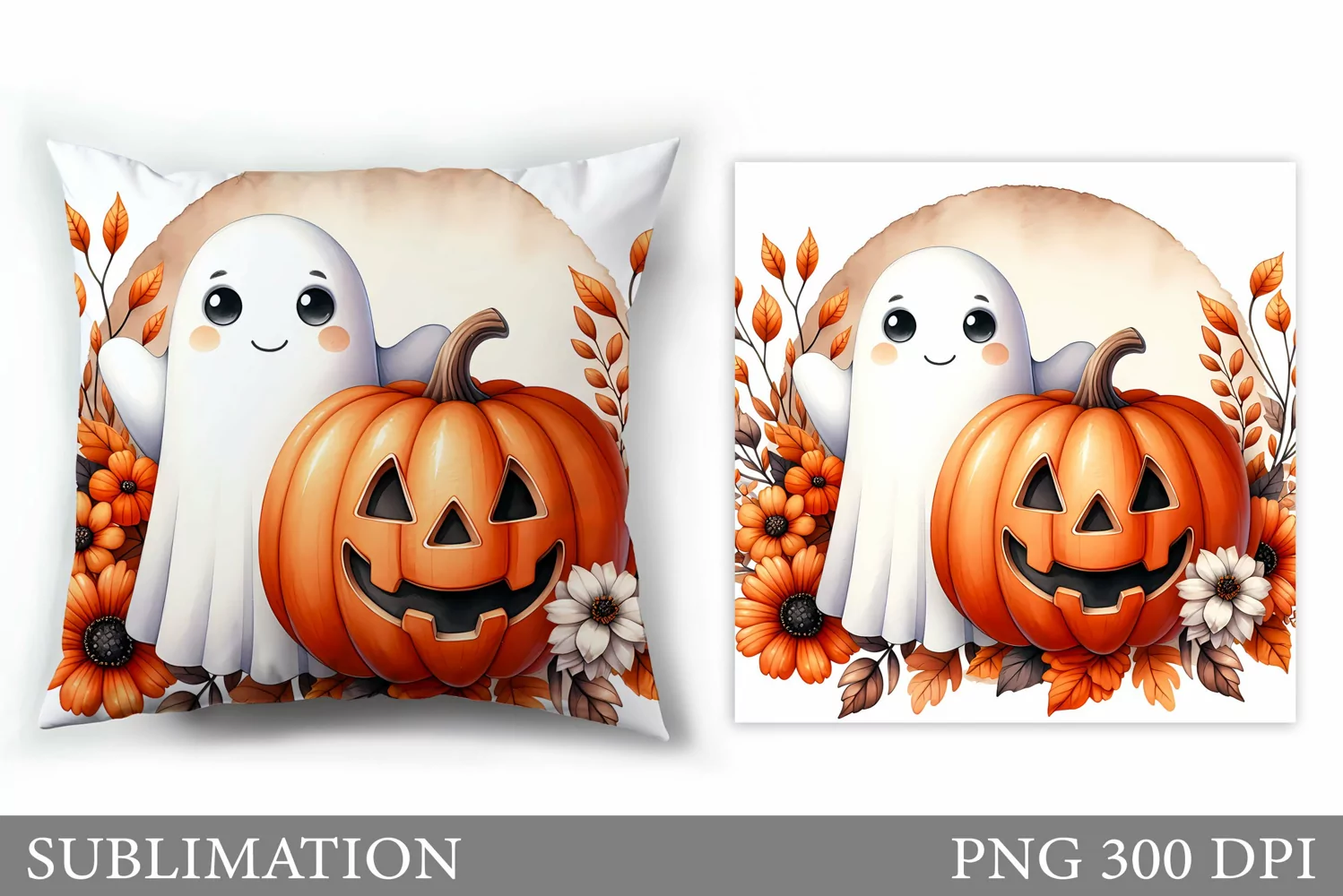 Fall Ghost Pillow Design. Cute Ghost Pillow Sublimation example image 1