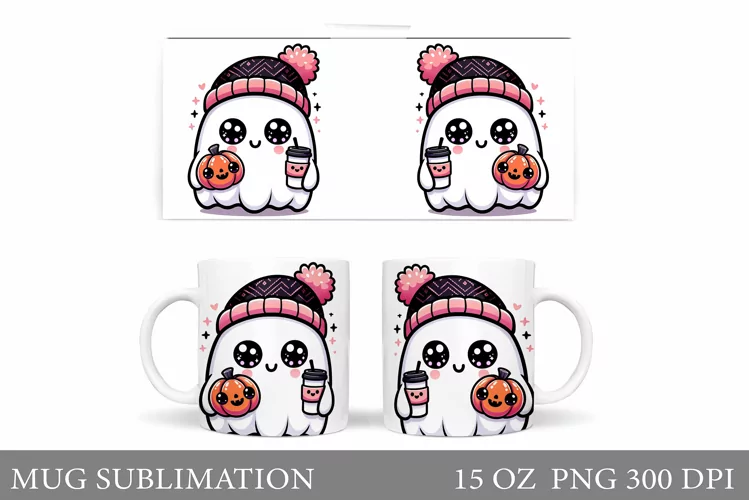 Cute Ghost Mug Design. Halloween Mug Sublimation