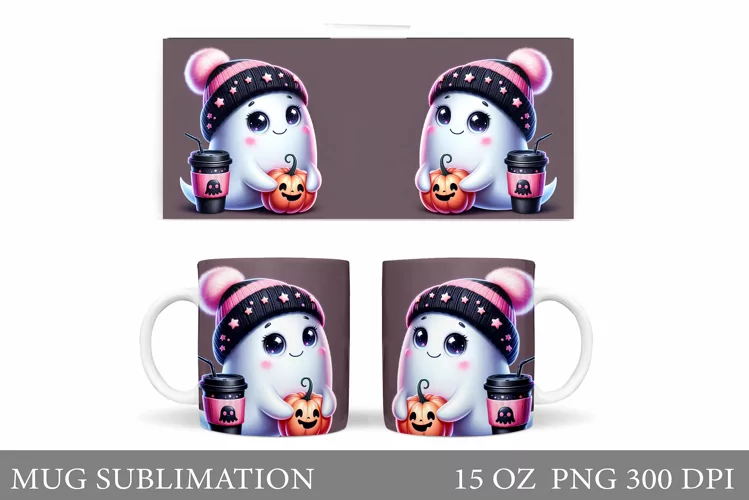 Cute Ghost Mug Design. Cute Halloween Sublimation
