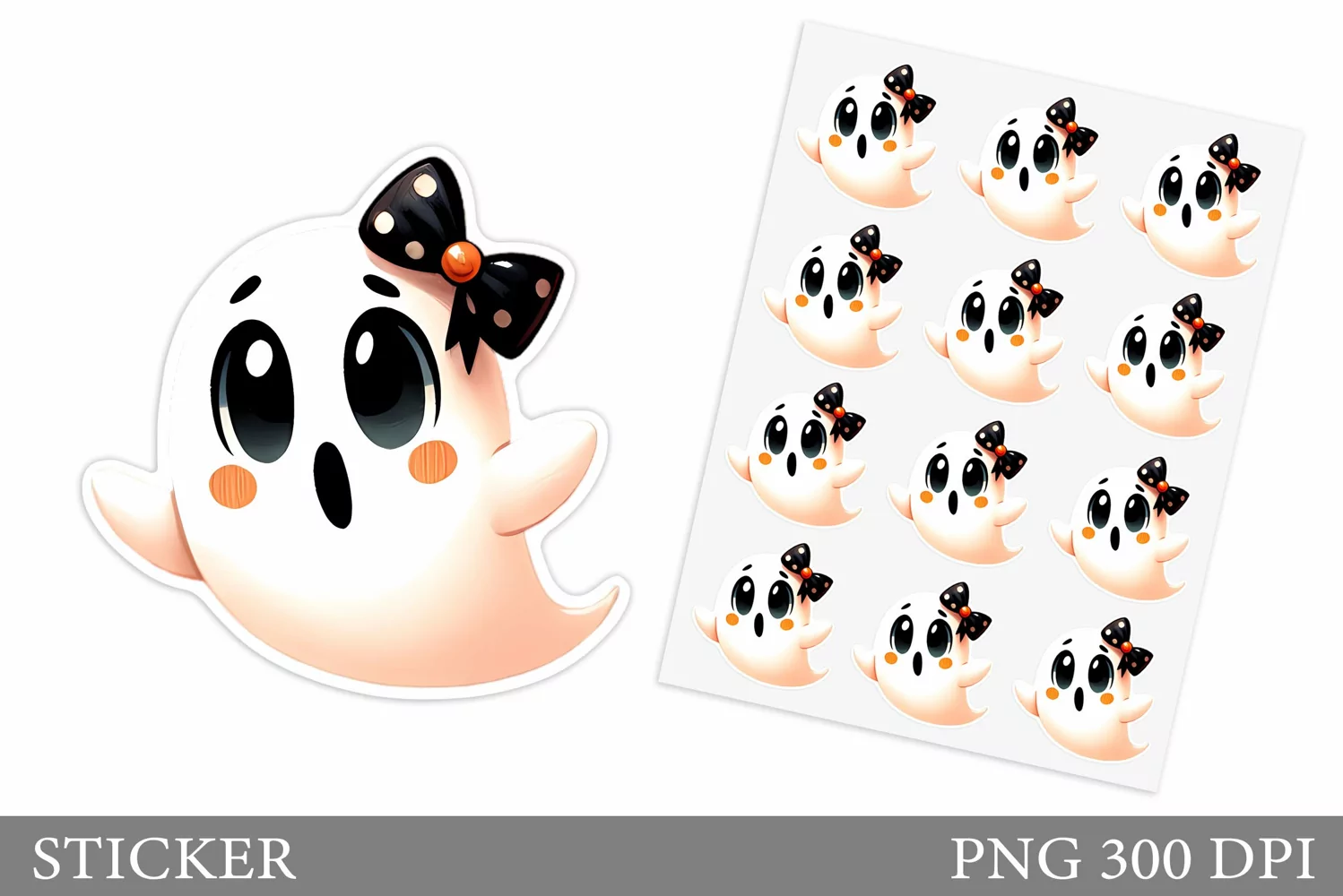 Cute Ghost Sticker Design. Cute Halloween Sticker example image 1