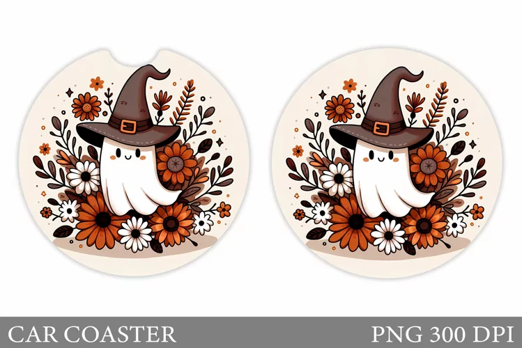 Cute Ghost Car Coaster Design. Halloween Car Coaster