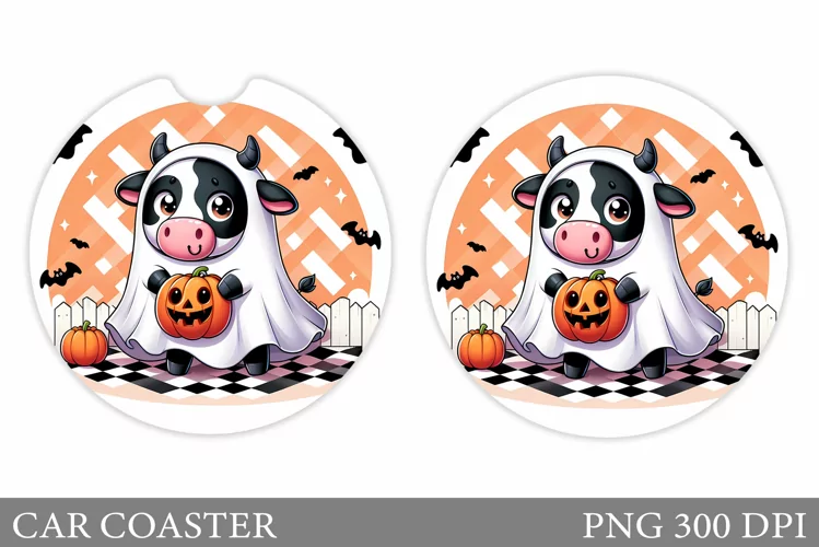 Cute Cow Ghost Car Coaster. Halloween Cow Car Coaster