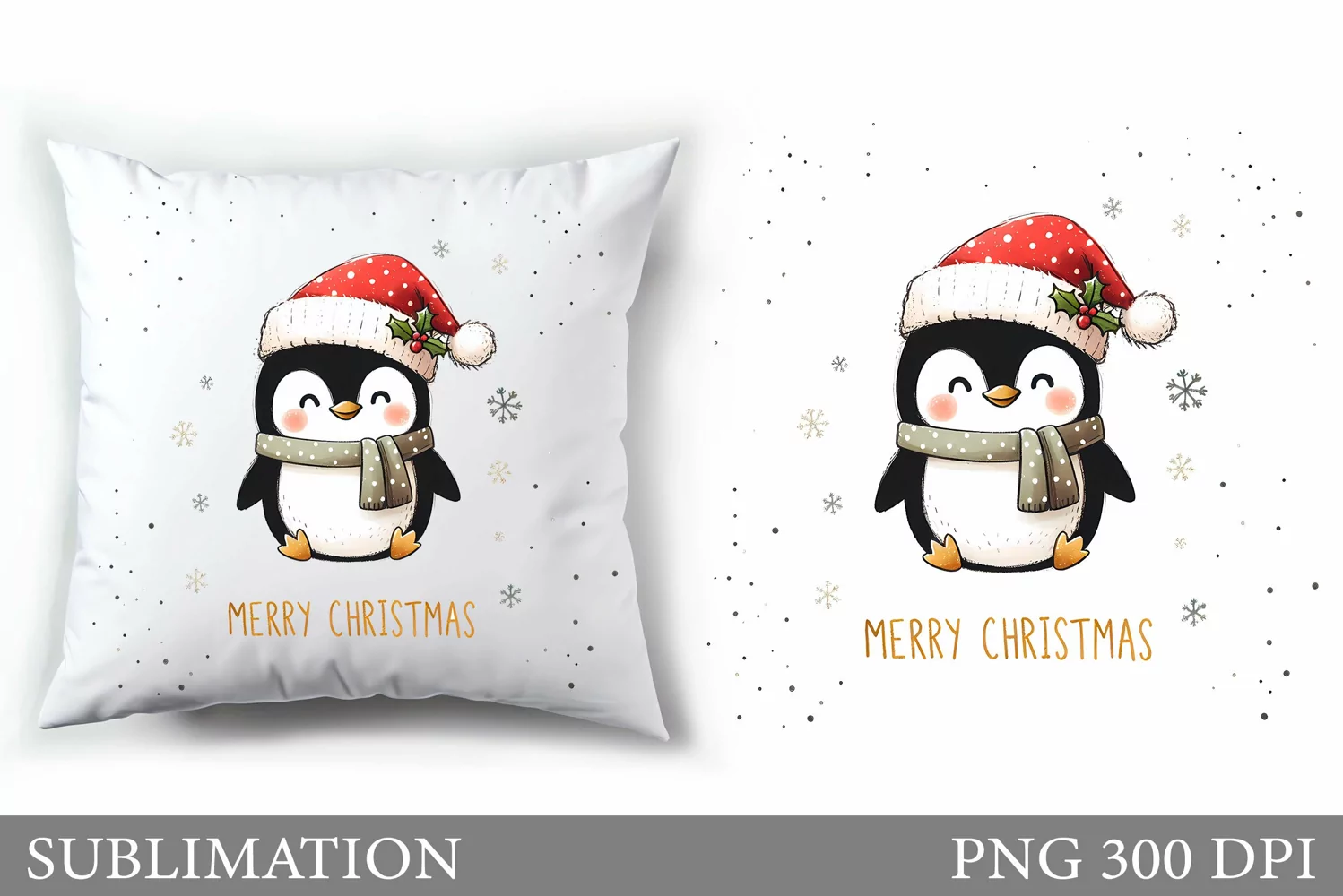Cute Penguin Pillow Design. Christmas Pillow Sublimation