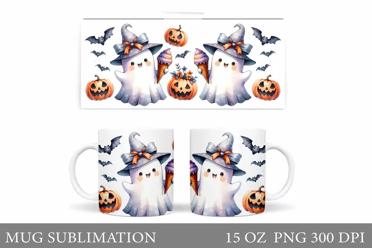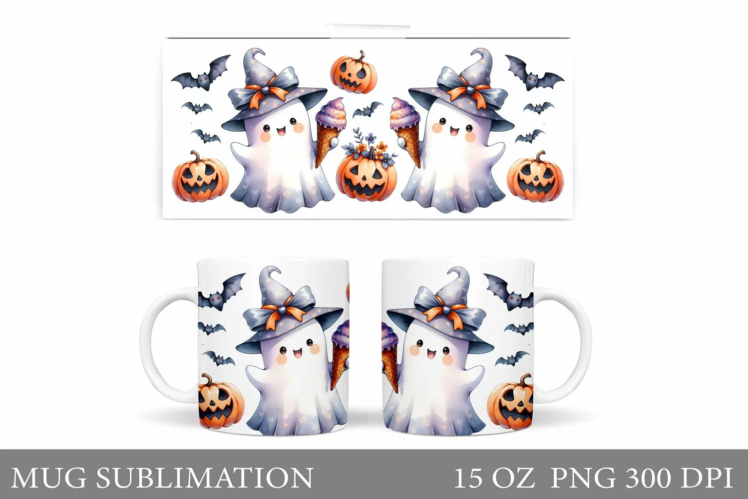 Cute Ghost Mug Design. Cute Halloween Sublimation