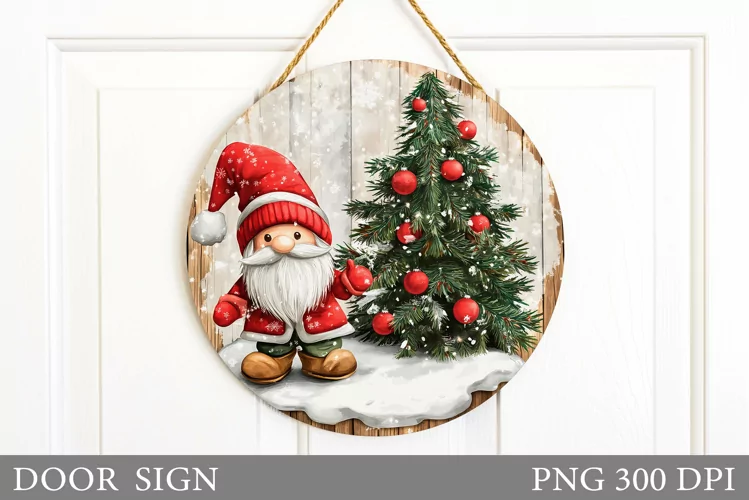 Christmas Gnome Door Sign. Christmas Door Sign Sublimation