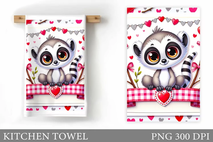 Valentines Sublimation Kitchen Towel Sublimation Valentines Kitchen Towel Animals Kitchen Towel Valentines Animal Kitchen Towel Valentines Lemur Sublimation Cute Lemur Kitchen Towel Valentines Lemur Kitchen Towel Funny Lemur Kitchen Towel