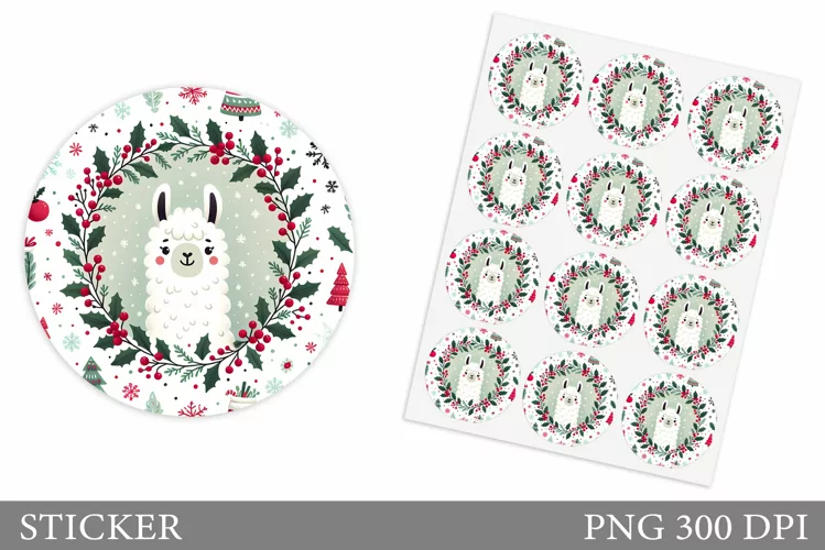 Cute Lama Sticker Design.Christmas Sticker Printable example image 1