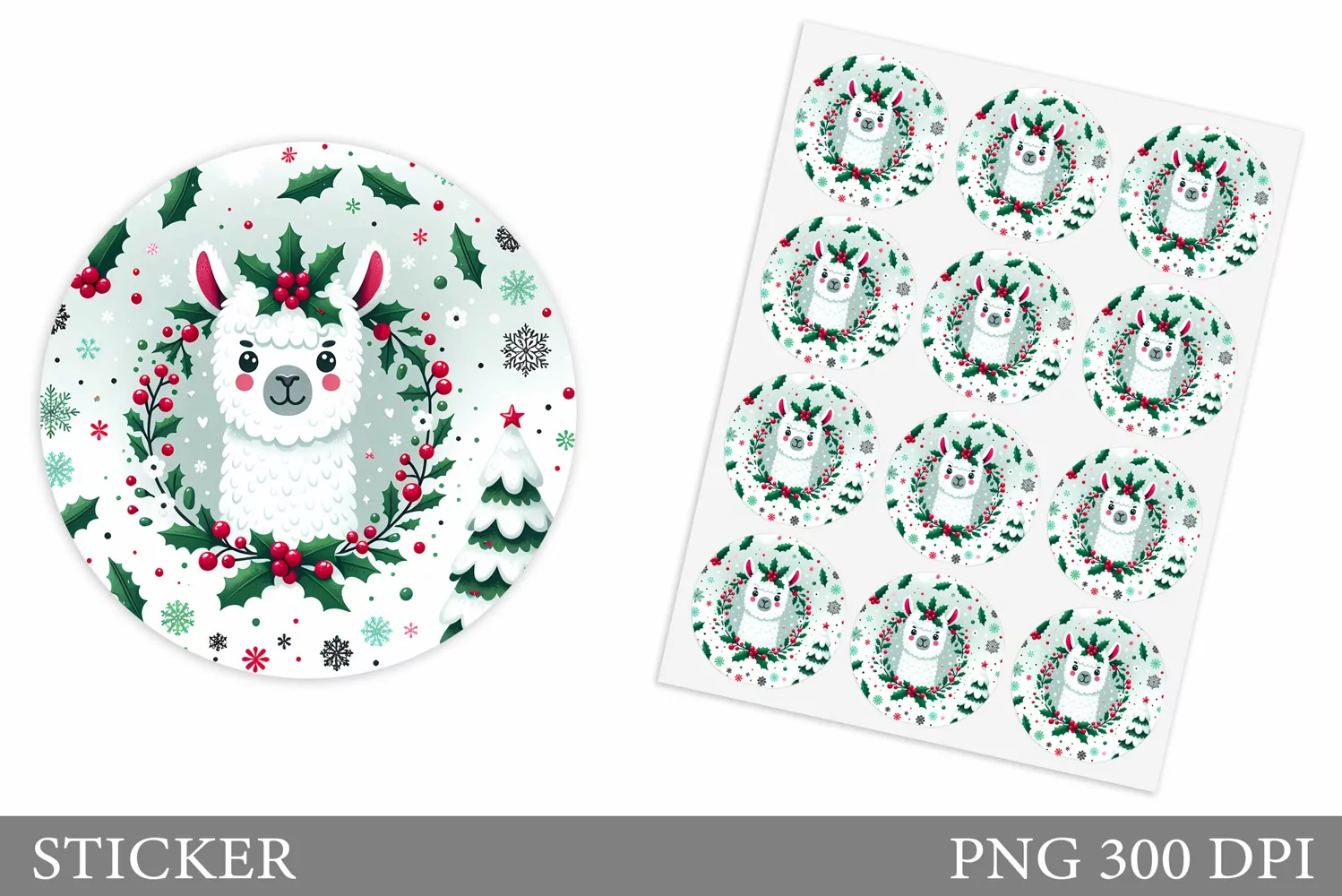 Similar Design Products to Cute Lama Sticker Design.Christmas Sticker Printable