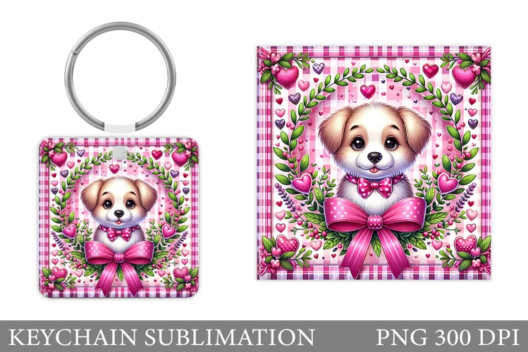 Cute Dog Keychain Sublimation. Valentines Keychain Design