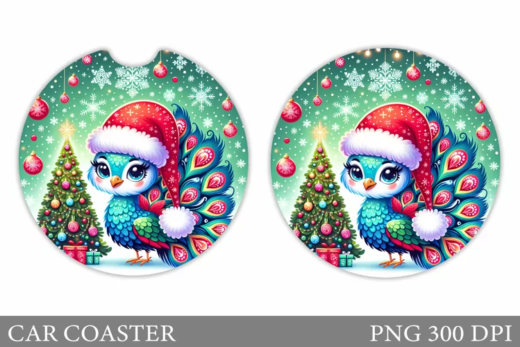Christmas Peacock Car Coaster. Christmas Car Coaster Design