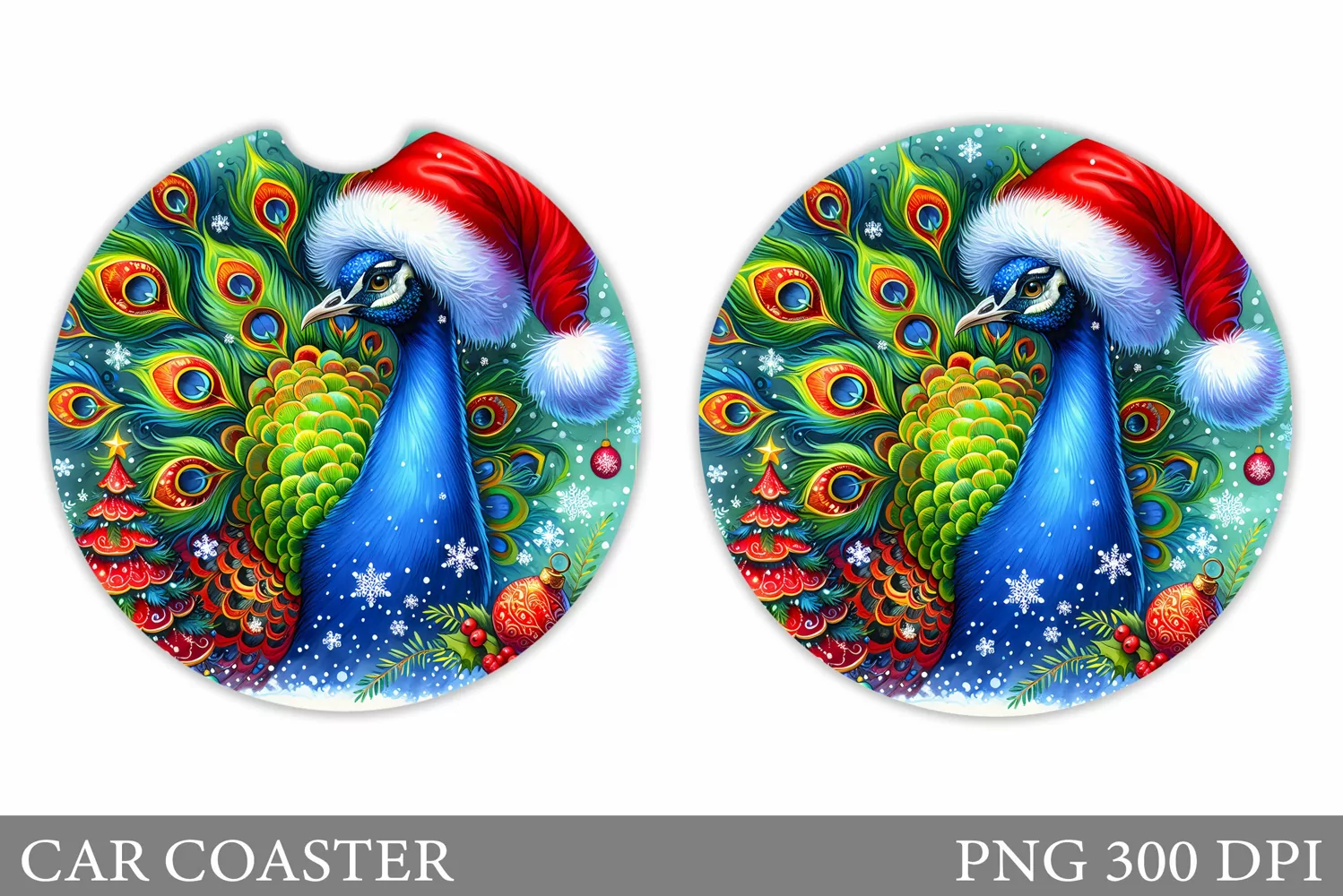 Christmas Peacock Car Coaster. Christmas Car Coaster Design