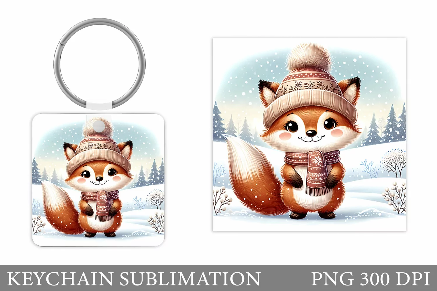Similar Design Products to Christmas Fox Keychain. Winter Fox Keychain Design