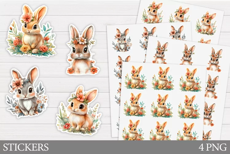 Similar Design Products to Cute Bunny Sticker Design. Bunny Flowers Sticker Printable