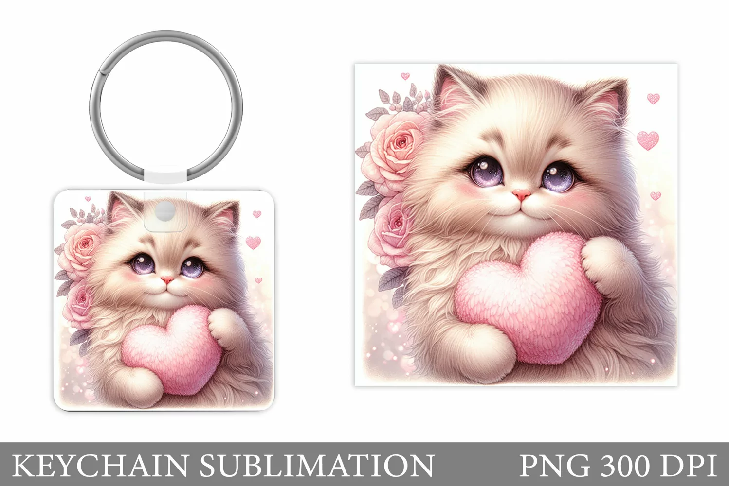 Cute Cat Keychain Sublimation. Valentines Keychain Design