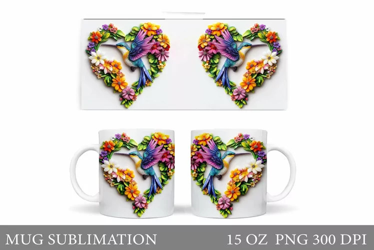 Hummingbird Mug Sublimation. Flowers Mug Design