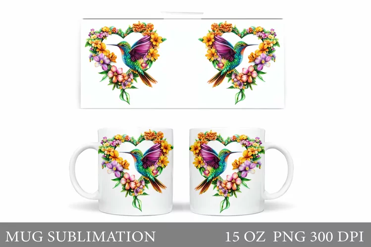 Hummingbird Mug Design. Flowers Mug Sublimation