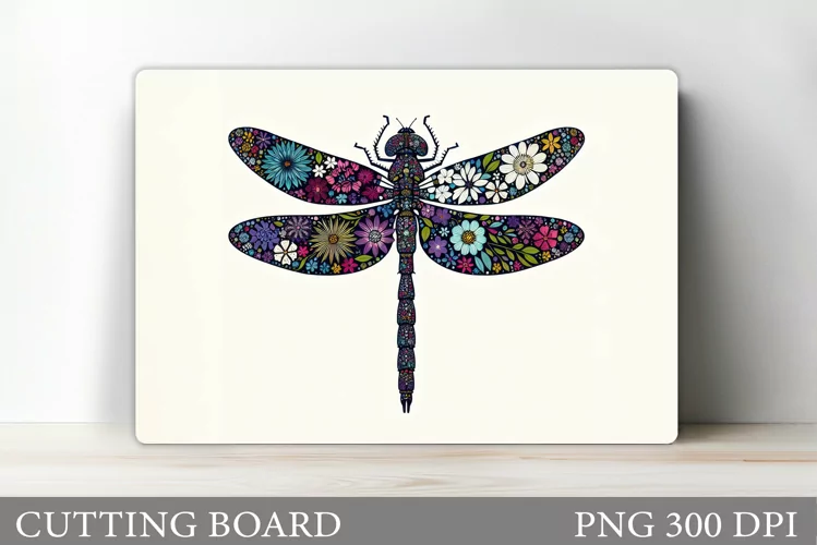 Dragonfly Cutting Board. Floral Dragonfly Sublimation