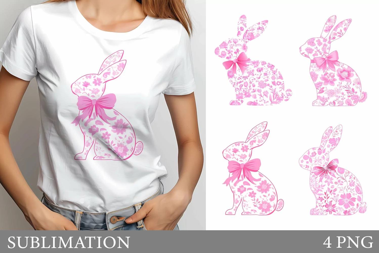 Floral Bunny Sublimation. Floral Bunny T-Shirt Design