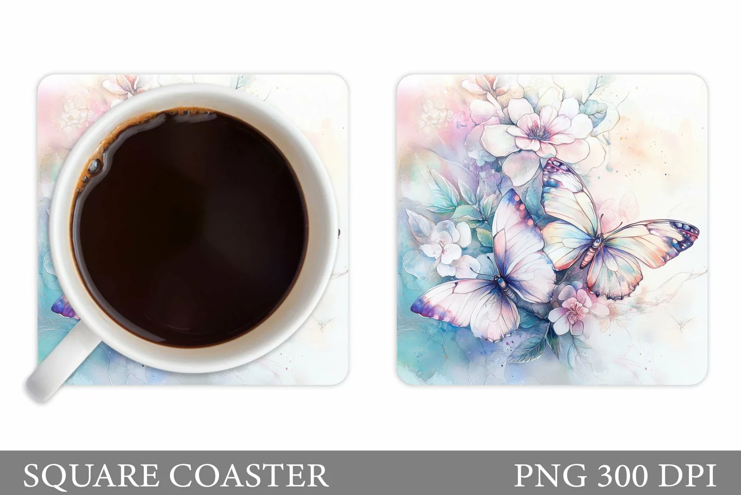 Butterflies Coaster Sublimation. Butterflies Sublimation example image 1