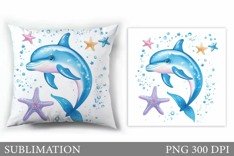 Cute Dolphin Sublimation. Dolphin Pillow Sublimation example image 1