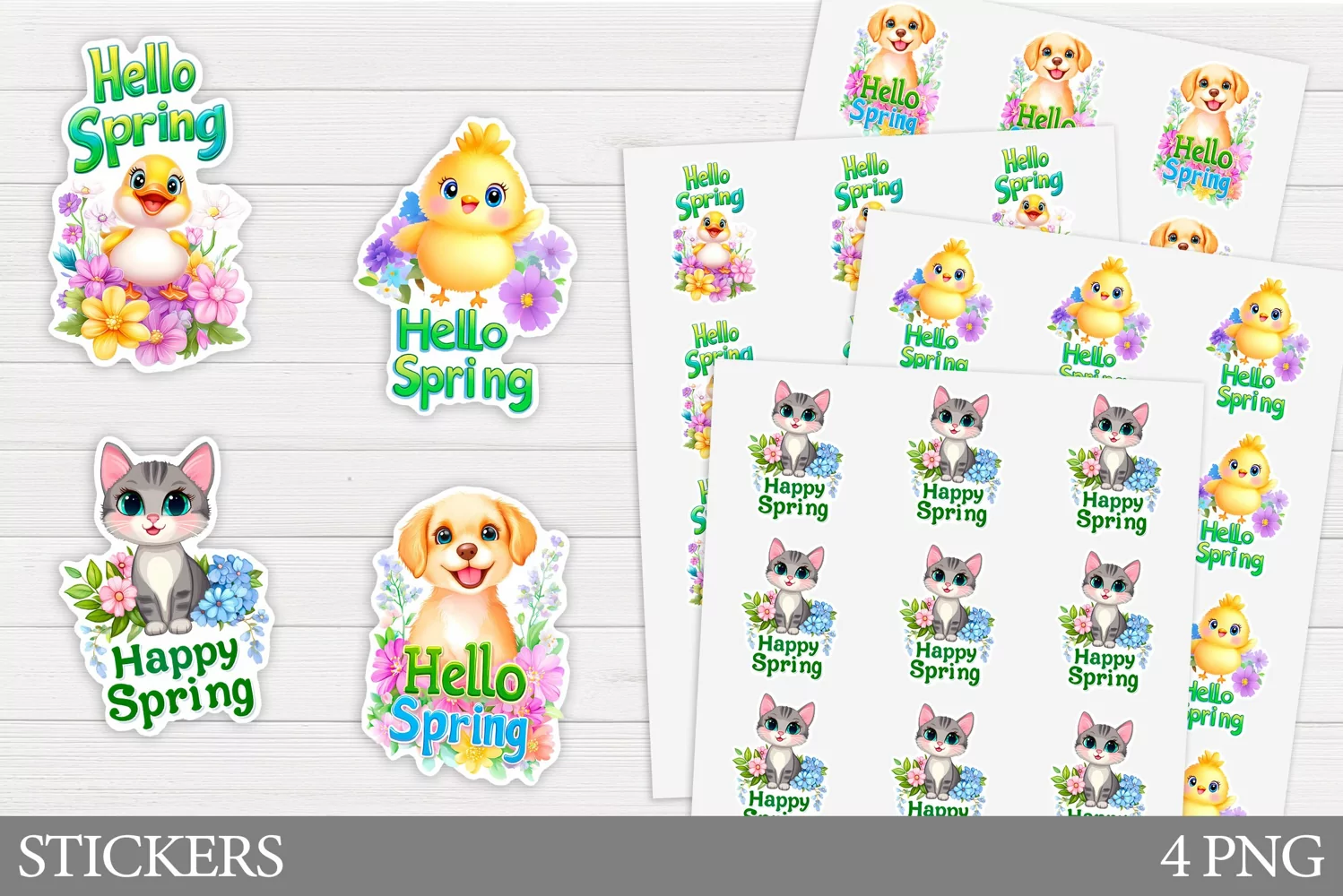 Easter Sticker Spring Sticker Cute Animals Sticker Spring Dog Sticker Hello Spring Sticker Spring Chick Sticker Spring Duck Sticker Spring Animals Sticker Animals Flowers Sticker Spring Cat Sticker