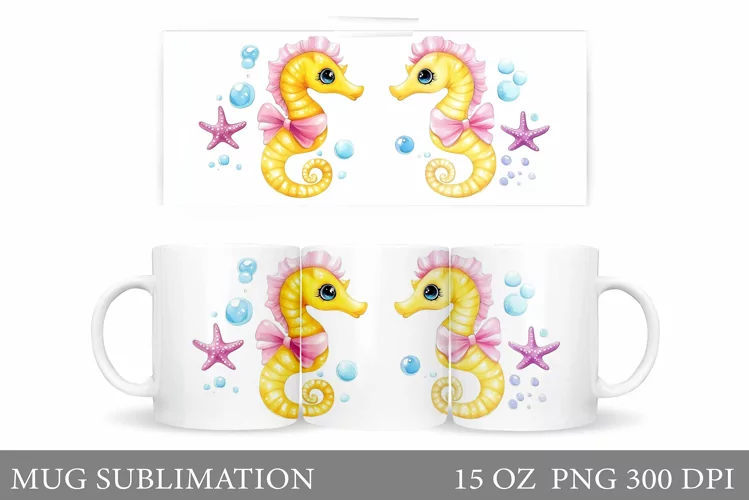 Cute Seahorse Mug Design. Seahorse Sublimation