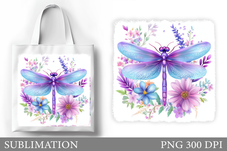 Dragonfly Tote Bag Design. Dragonfly Flowers Sublimation