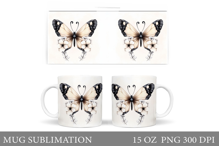 Butterfly Mug Sublimation. Butterfly Flowers Mug Design example image 1
