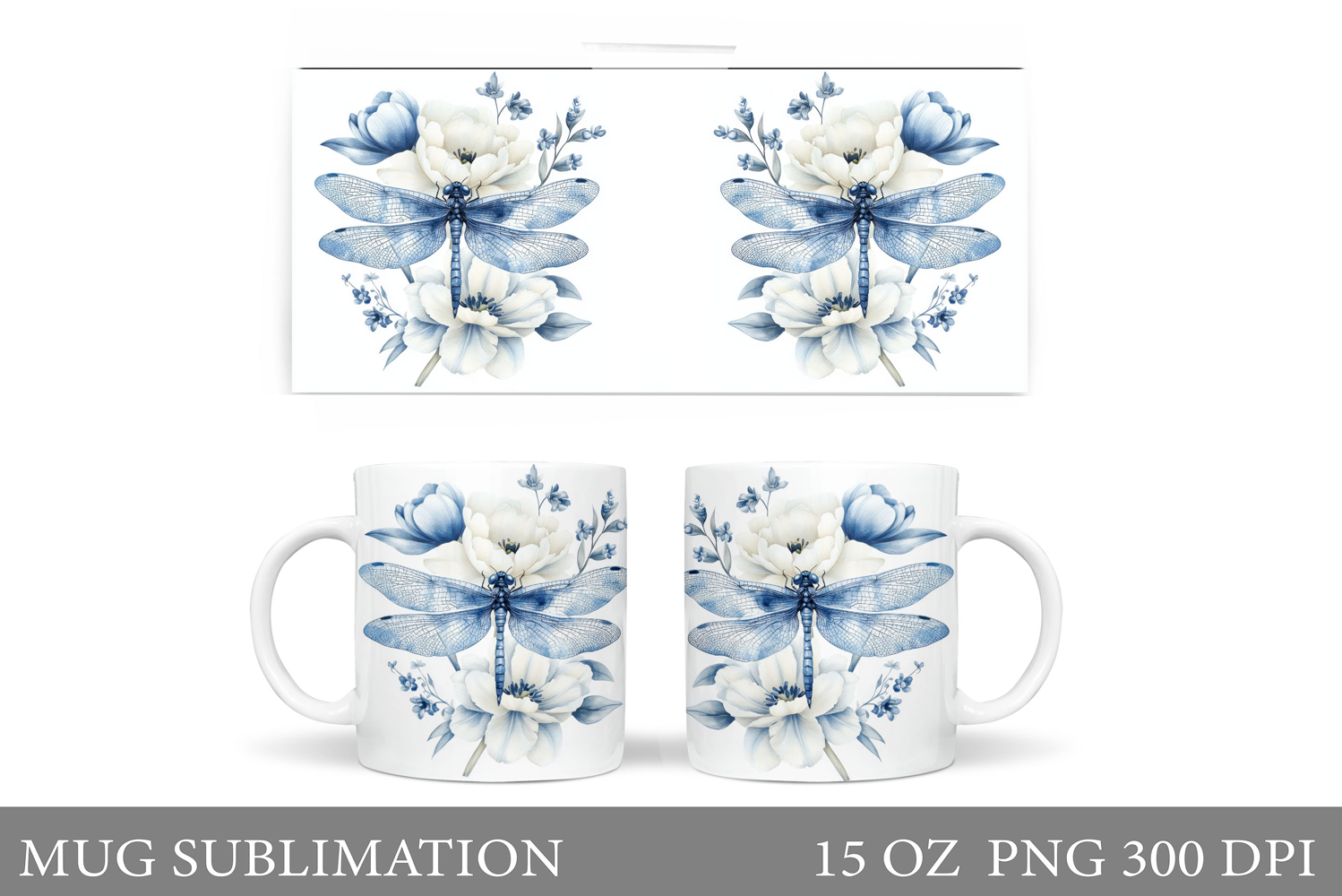 Dragonfly Mug Sublimation. Flowers Mug Design