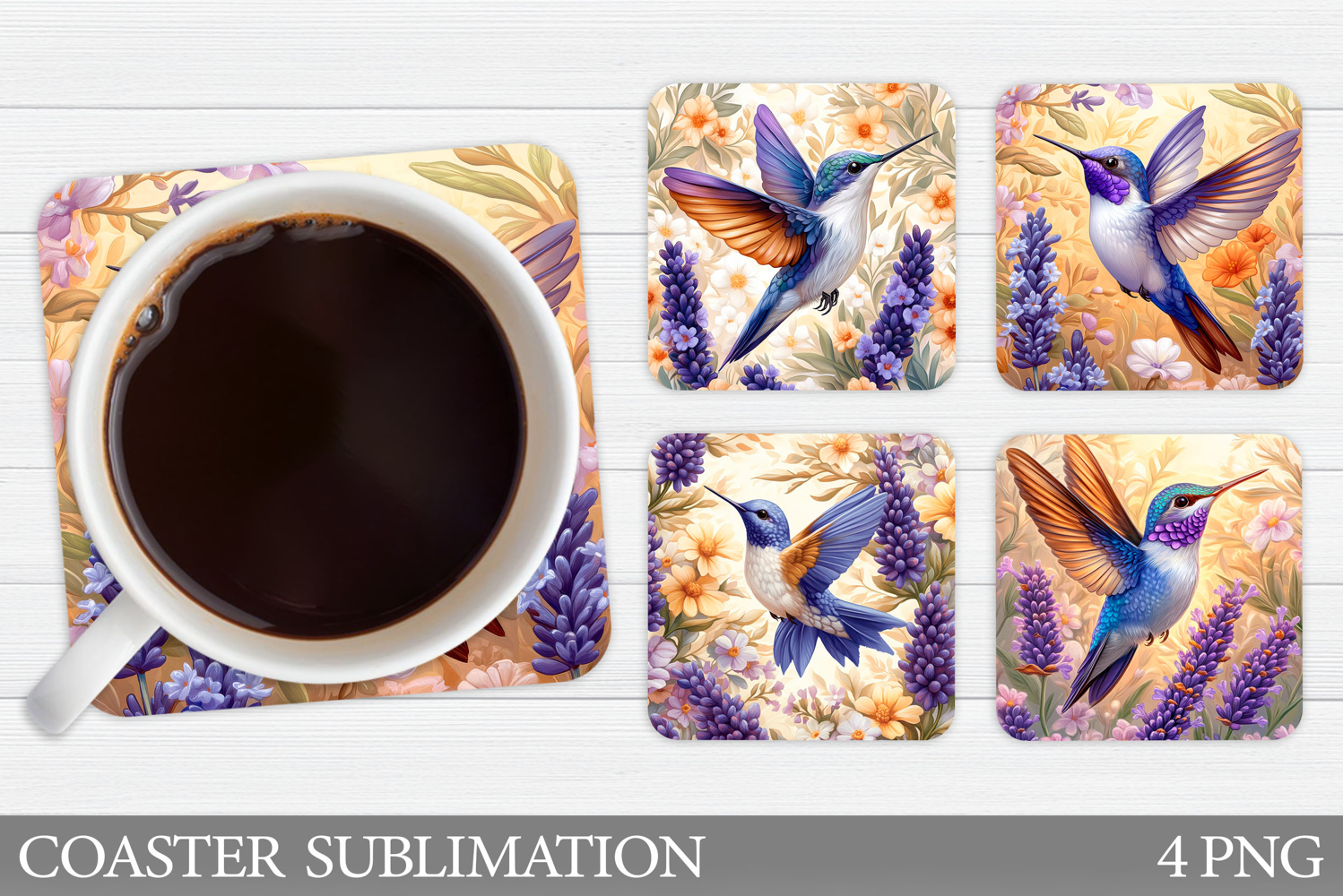 Hummingbird Coaster Design. Bird Flowers Coaster Sublimation example image 1