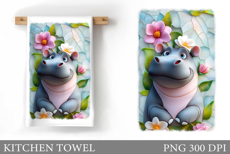 Cute Hippopotamus Kitchen Towel. Cute Hippo Sublimation example image 1