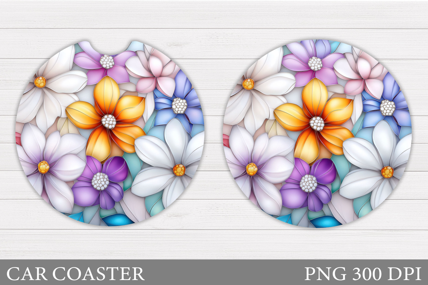 Flowers Car Coaster Sublimation. Floral Coaster Design