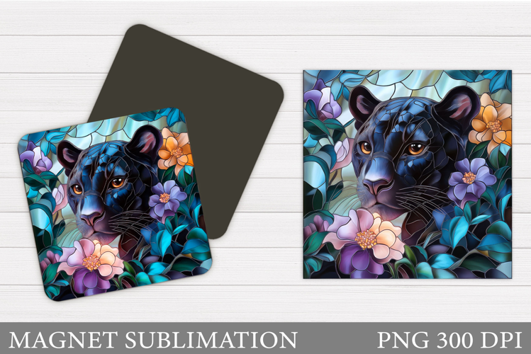 Panther Coaster Stained Glass Magnet Panther Sublimation Summer Magnet Panther Magnet Panther Square Magnet Panther Magnet Sublimation Cute Panther Magnet Panther Flowers Magnet
