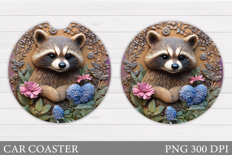 Cute Raccoon Car Coaster. Raccoon Flowers Car Coaster
