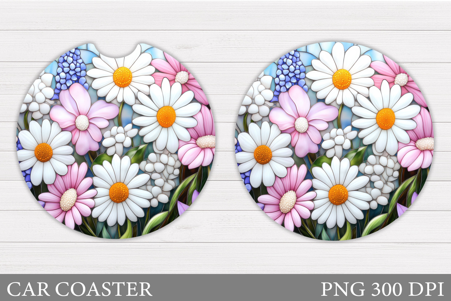 Daisy Flowers Car Coaster. Flowers Coaster Sublimation