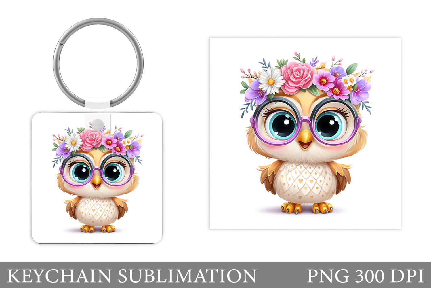 Owl Keychain Design. Owl Flowers Keychain Sublimation