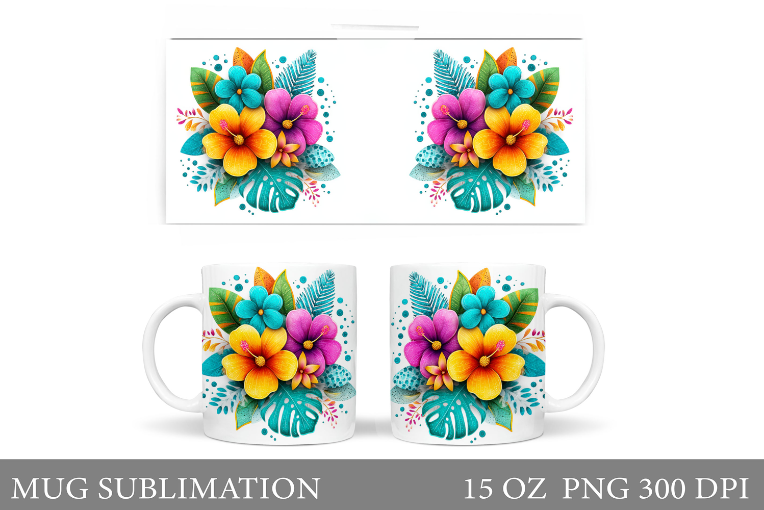 Tropical Flowers Mug Sublimation. Floral Mug Wrap Design