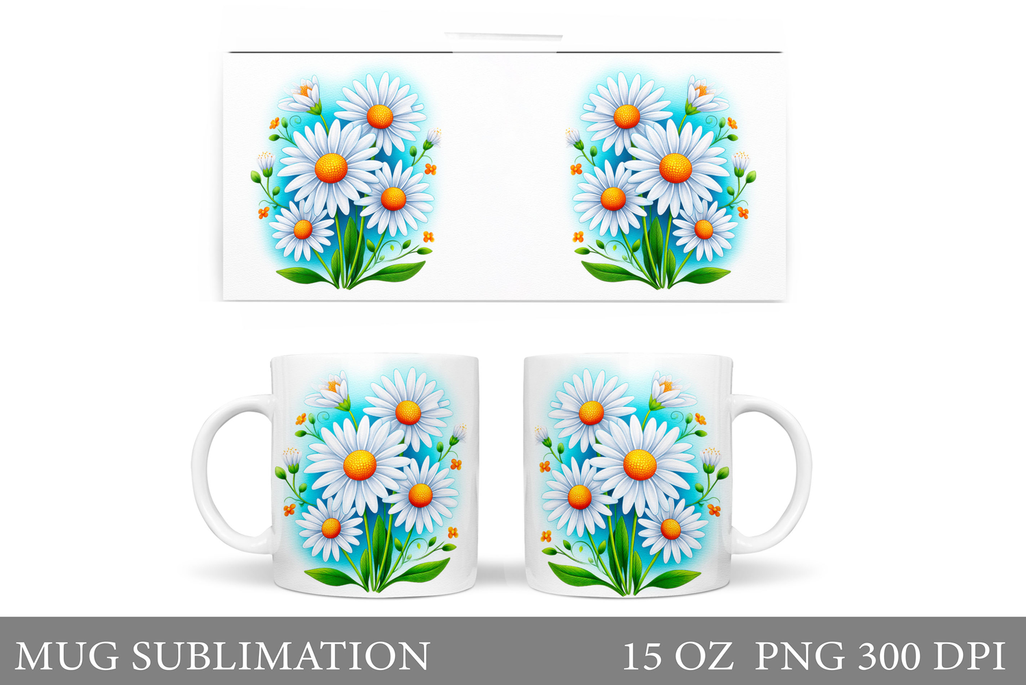Daisy Flowers Mug Design. Flowers Mug Sublimation