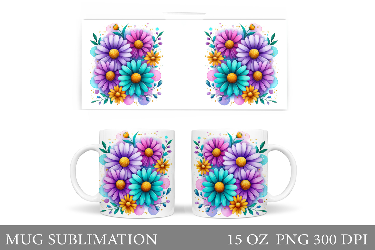 Similar Design Products to Daisy Flowers Mug Sublimation. Flowers Mug Wrap Design
