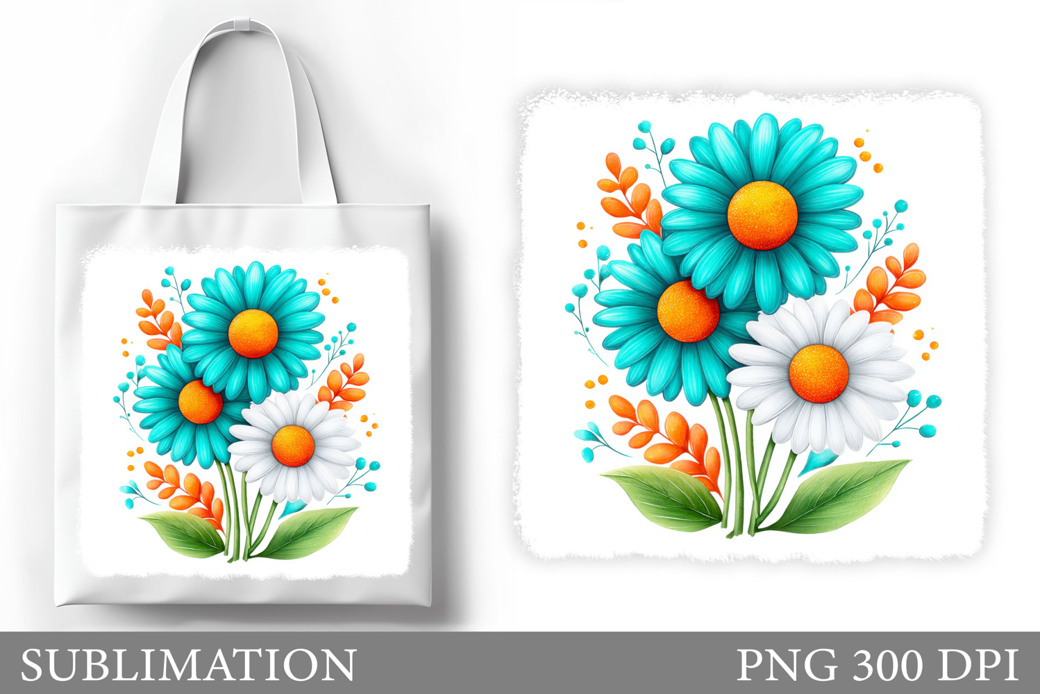 Daisy Flowers Tote Bag. Flowers Sublimation