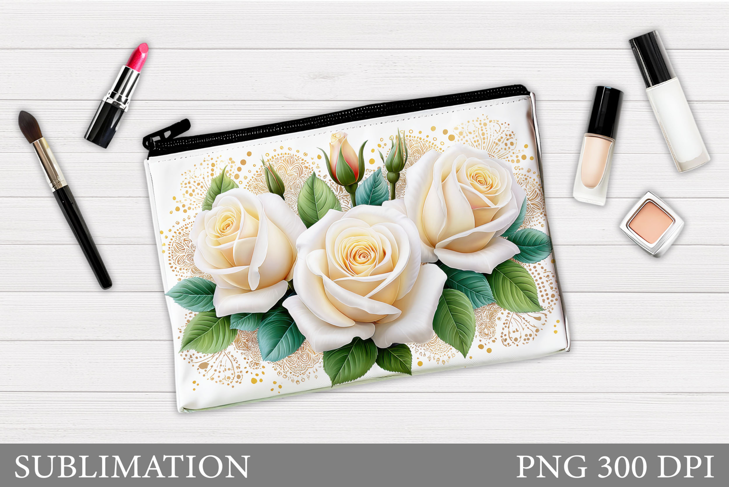 Roses Makeup Bag Sublimation. Floral Makeup Bag Design