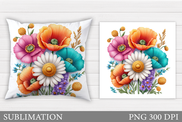 Wildflowers Pillow Sublimation. Flowers Sublimation