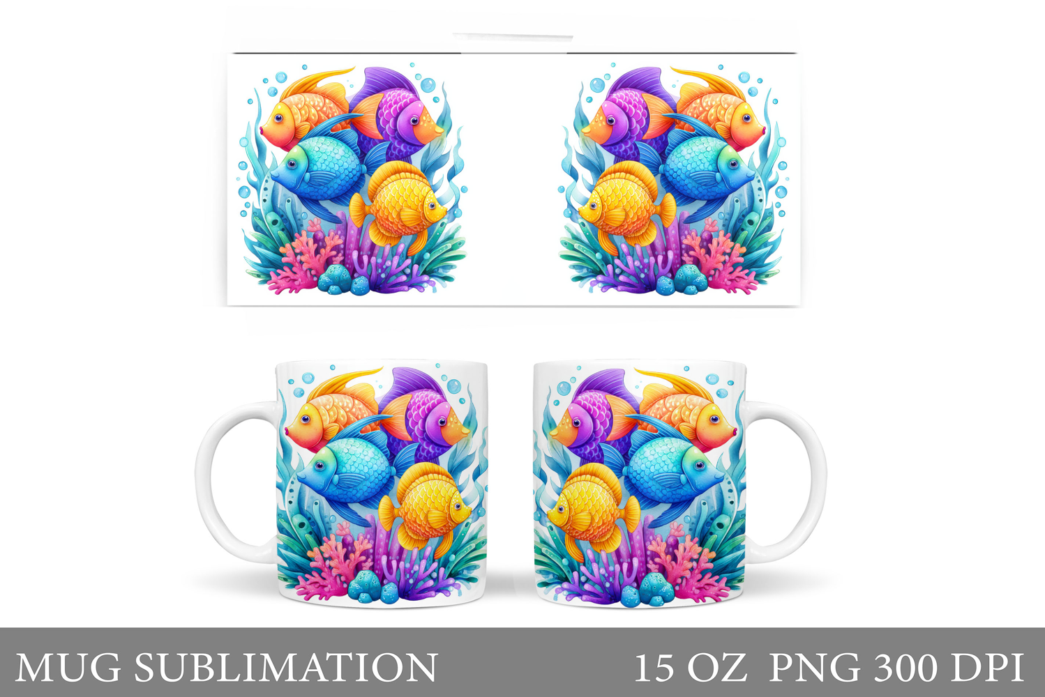 Fish Mug Wrap Design. Fish Mug Sublimation